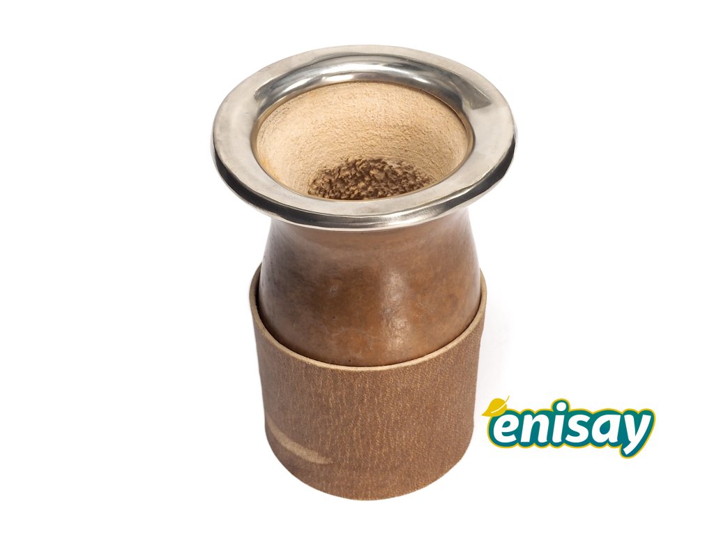 Toto je tradiční kalabasa s koženým podstavcem vyrobená z vyhloubené a sušené kalabasy. Přírodní, nezdobená kalabasa, nebo jedna s minimálním zdobením, vystlaná kovem pro zpevnění. Velikost a vzhled se mohou lišit.