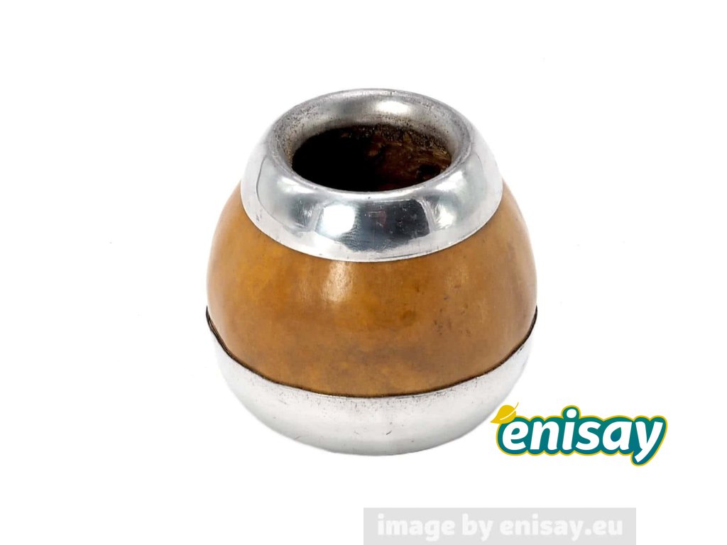Dies ist ein natürlicher Kalebassenkürbis mit einem Aluminiumrand und -boden. Traditionelle Kürbisse werden in Handarbeit aus einer getrockneten und ausgehöhlten Kürbispflanze hergestellt, daher können sie in Form und Größe leicht variieren. Es wird empfohlen, den Kürbis vor dem Gebrauch zu trocknen. Fassungsvermögen: ca. 80-120 ml Höhe: 7,5 cm, Breite: 7 cmZusätzliche Parameter