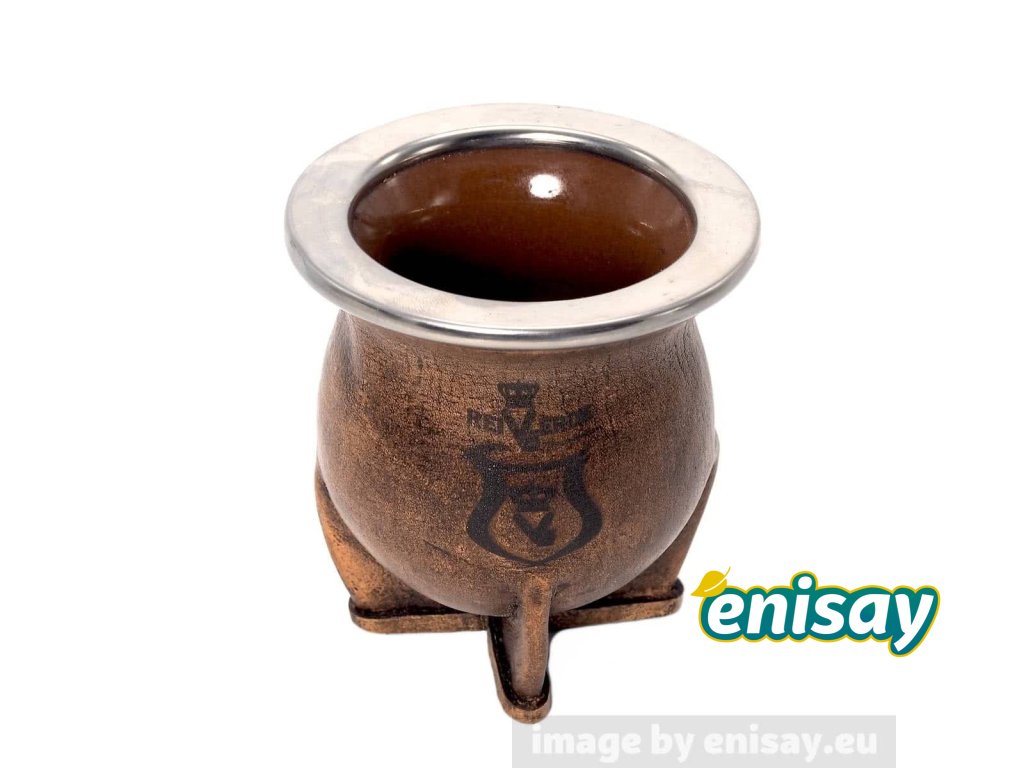 This is a handmade ceramic gourd with a Rei Verde logo on the side and an aluminum edge, wrapped in black leather. Ceramic gourds have a lot of advantages in comparison to calabash and wooden gourds, making them beginner-friendly. These gourds are easy to clean and store, they don’t need curing and insulate heat very well. \n \nCapacity: approximately 170-250 ml \nHeight: 11 cm, width: 9 cmSeien Sie der Erste, der einen Beitrag über diesen Artikel schreibt.
