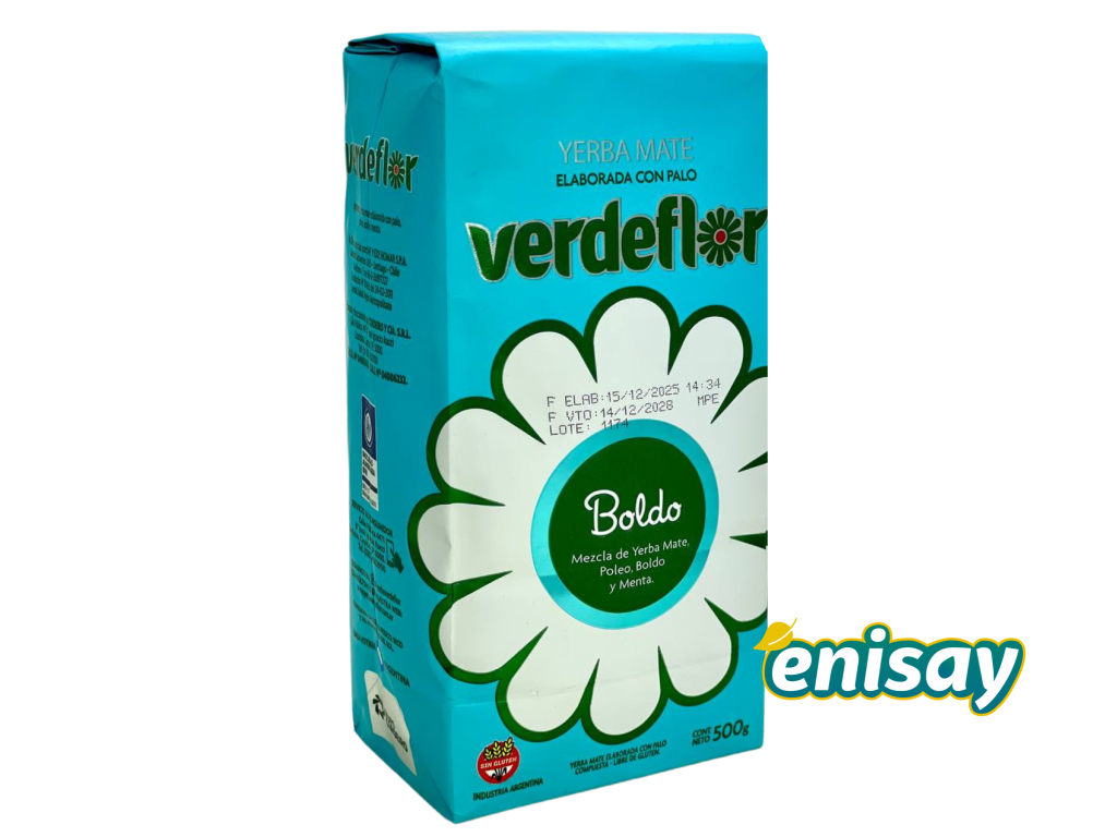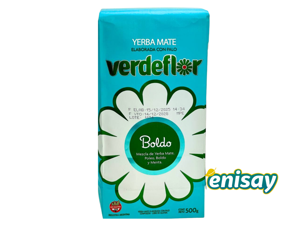 Verdeflor is an Argentinean yerba mate brand from Misiones, founded in 1982. Due to high standards of production their delicious mate is gaining more and more fans not only in Argentina, but all over South America, USA and Europe. \n \nVerdeflor Boldo is a blend of high-quality yerba leaves with Chilean boldo, as well as pennyroyal and mint. This combination of herbs has many digestive properties. As a result, this mate develops a vibrant herbal flavor and aroma, both refreshing and delicious, and can help you reduce appetite and boost metabolism.Zusätzliche Parameter