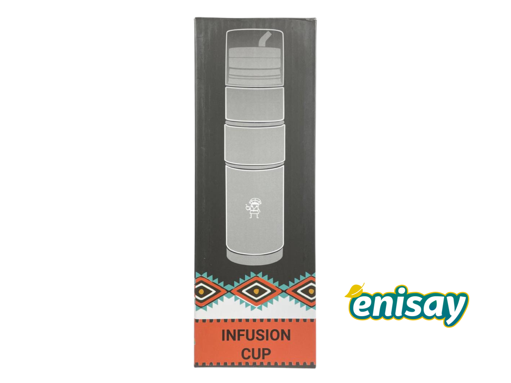 Der Yerbee 500 ml Thermo-Infusionsbecher in elegantem Schwarz wird in einer praktischen Papierverpackung geliefert. Er besteht aus doppelwandigem Edelstahl, der die Temperatur Ihres Getränks über Stunden hinweg hält, während der integrierte Infuser eine einfache Zubereitung von Yerba Mate oder losem Tee ermöglicht. Die matte schwarze Oberfläche verleiht ihm ein modernes, minimalistisches Design, das durch das markante Yerbee-Logo ergänzt wird. Eine ausgezeichnete Wahl für den täglichen Gebrauch – ob zu Hause, im Büro oder unterwegs.