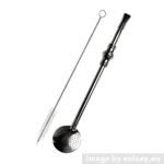 - El filtro en el extremo es lo que realmente distingue a una bombilla de otros tipos de pajillas. Aquí es donde existe la mayor variación entre diferentes diseños de bombillas. Es una construcción hueca y perforada que separa la infusión del mate de las hojas, palitos y otros restos, funcionando de manera similar a un colador o a la pantalla metálica perforada de una tetera.